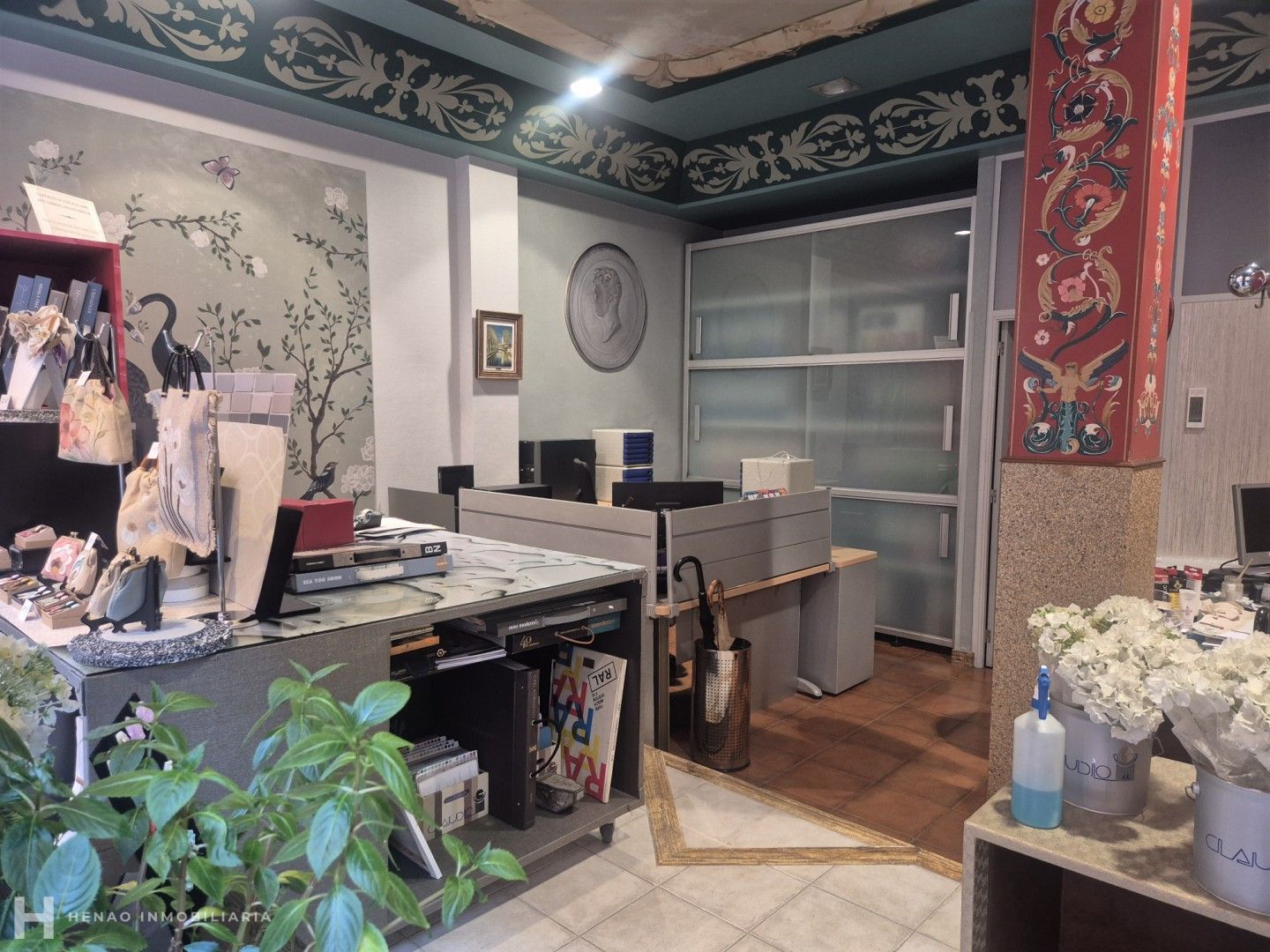Consta de cinco estancias con una zona común, un almacén, una zona de archivos, una oficina y un baño.
