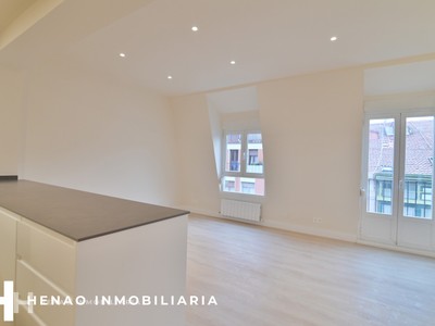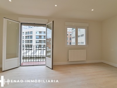 HENAO INMOBILIARIA VENDE EN EXCLUSIVA esta vivienda reformada íntegramente con 3 habitaciones, 2 baños completos y dos balcones. El espacio central de la casa alberga una sala con cocina americana totalmente instalada y acceso a uno de los balcones. Con una muy buena altura, recibe luz natural durante todo el día, ya que tiene doble orientación. La habitación principal con 15m2 de superficie, tiene igualmente balcón y baño en suite.