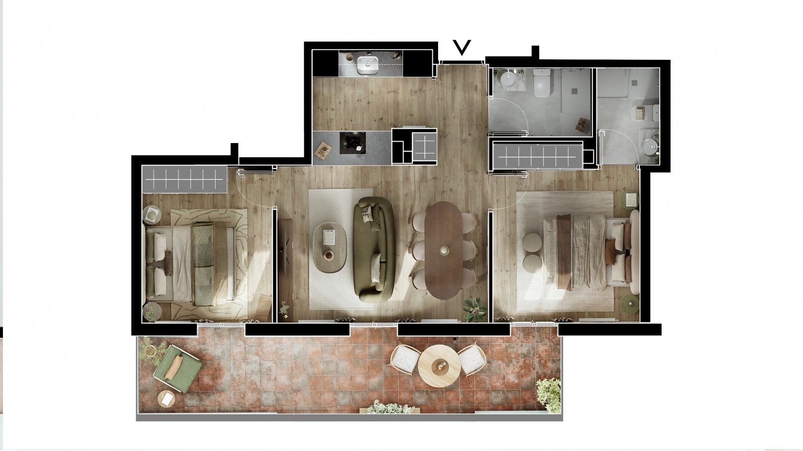 Una terraza de 17 mt2 orienta al sur.